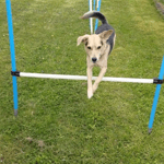 Ausgleich zum Schreiben, heißt auch Bewegung mit meiner Hündin Kayla. Sie springt und liebt es zu rennen, weshalb Agility genau das Richtige für uns ist.
